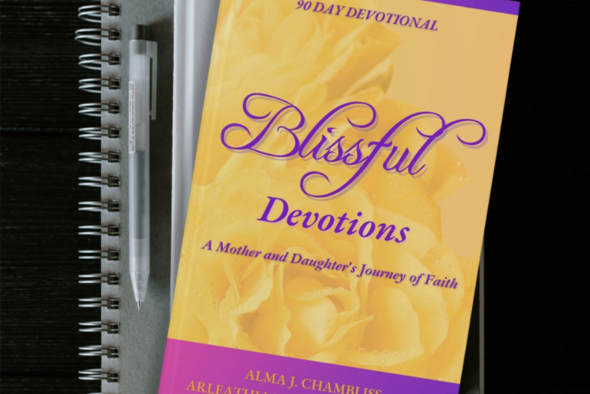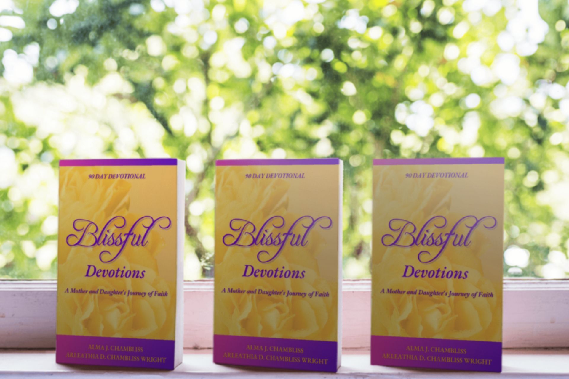 Blissful Devotions, a heartwarming, full color devotional hardcover book written by a mother and daughter. It is a collection of daily devotions, prayers, and journal pages that will help you grow in your faith and deepen your relationship with God.